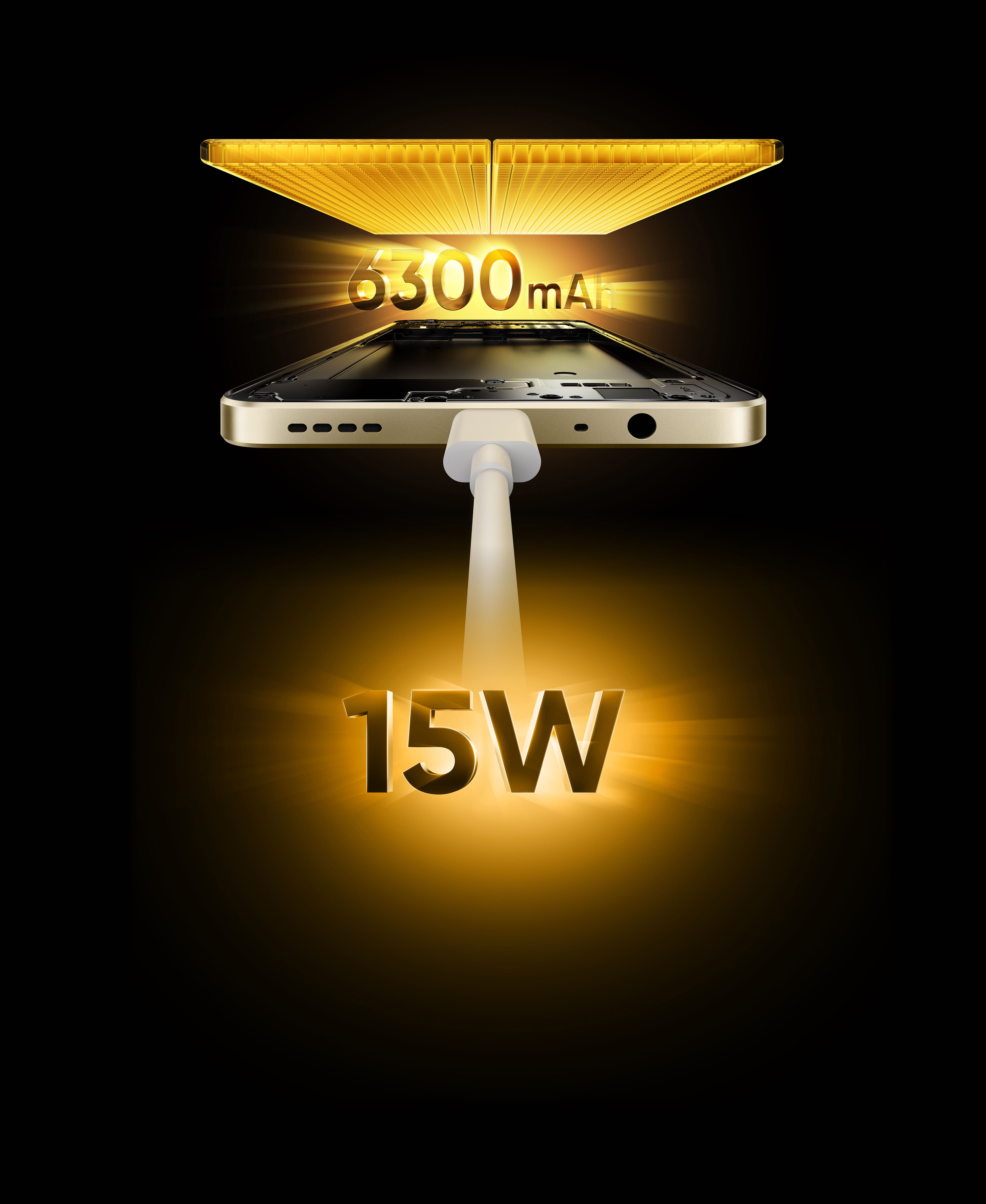 Equipped with a 6,300 mAh battery, giving extended usage for streaming, gaming, or social media.